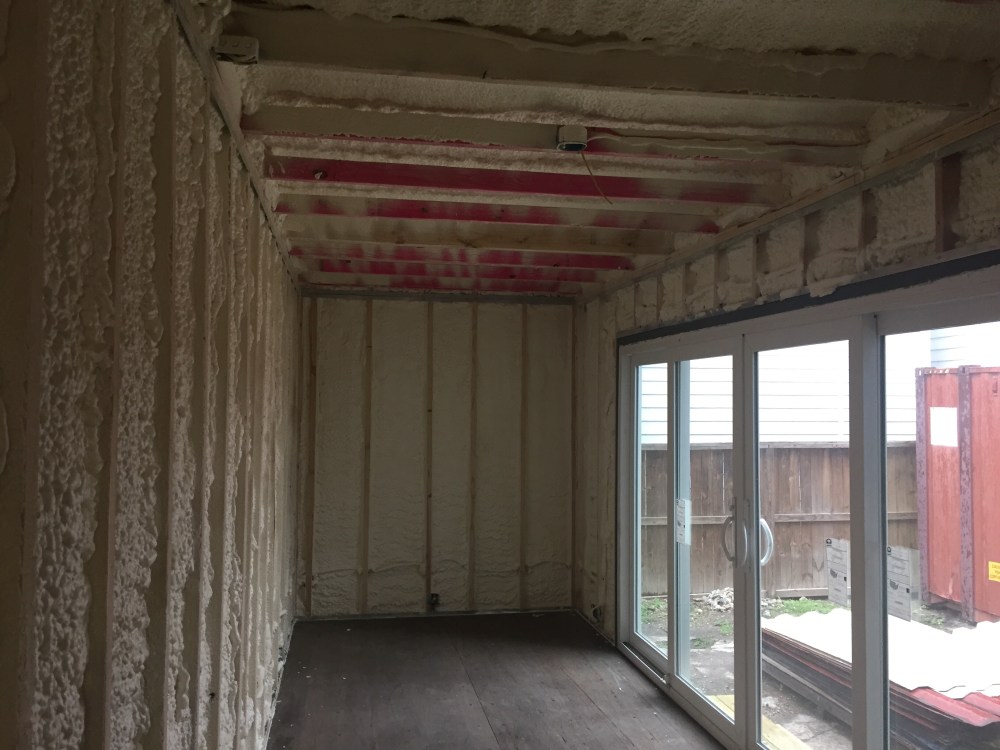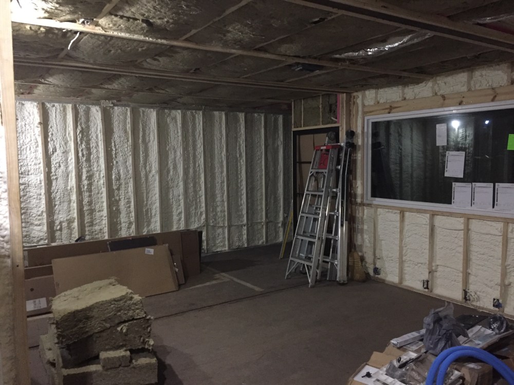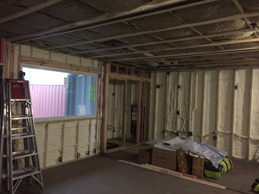 The closed cell spray foam was completed this past week, but there is some follow up to be done on that. For the most part it is fine, but there was some overspray on finished products that is a big concern. I am reserving my final opinion until we see how the issues are handled. But suffice it to say, replacing the permitted shower pan because it had overspray and then was scratched by the installer trying to remove the overspray (after I explicitly told him not to use a metal scraper) is not at the top of my list for things I want to have done.