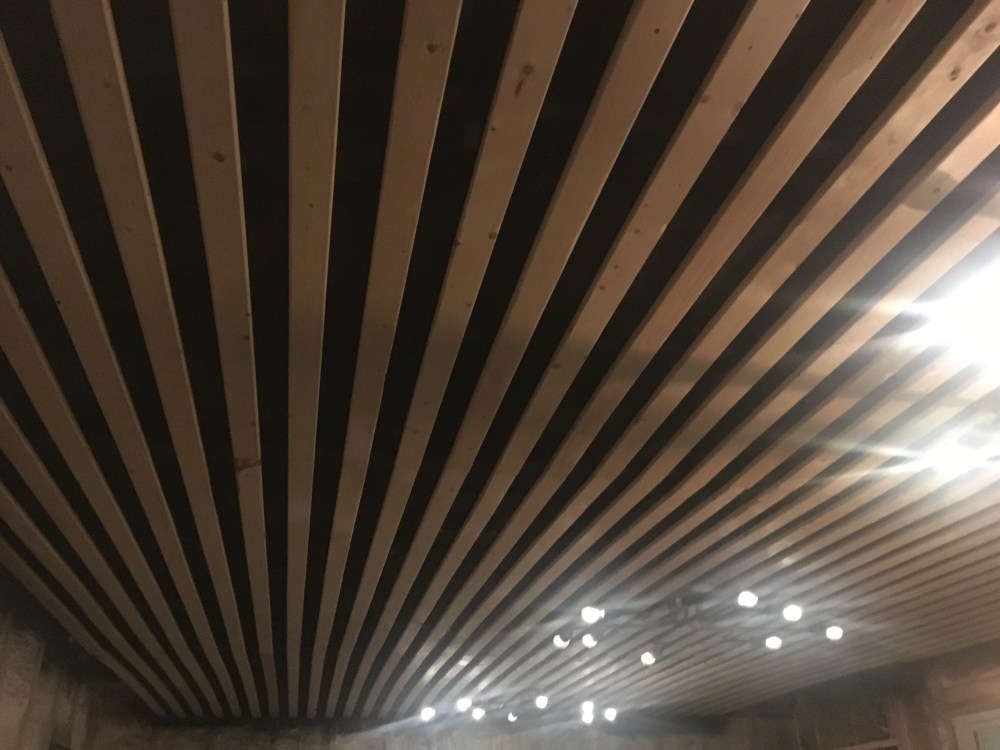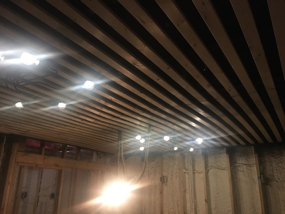 Drywall should be going in this week, so the ceiling slats needed to be completed. The HVAC is complete and working, so it could be covered. Because of the type of unit, there had to be an access panel for the main one. It breaks up the continuity of the ceiling just a bit, but is better than being left open.