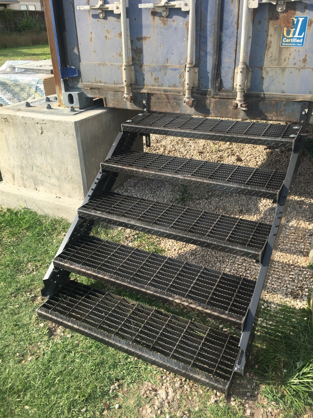 The grating came in for the second floor small balconies and the open space from the second floor to the third. It had to be cut and ground down, but turned out well. Definitely makes it feel more open.