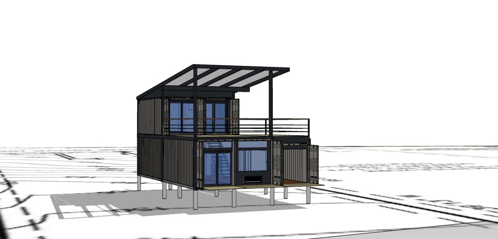 I have a little bit of a head start when it comes to the containers. One that we purchased for work several years ago is no longer needed. I plan on moving it, although retrieving it will be challenging. I will be able to integrate it into the design even though it isn’t exactly what I would have chosen had it not already been owned. Already having it to use will help defray the cost of the other containers that have gone up significantly in price since I did the original house. It will also give me the extra space that the neighborhood requires on interior square footage for new construction. And having the roll up door already in it will let me use that part as an indoor / outdoor room. I will be able to roll up the door, expand the size of the living room that it ultimately adjoins, and have a sort of game room area on the first floor.
