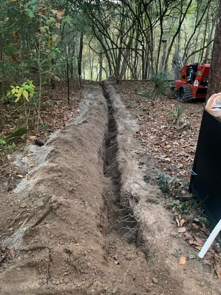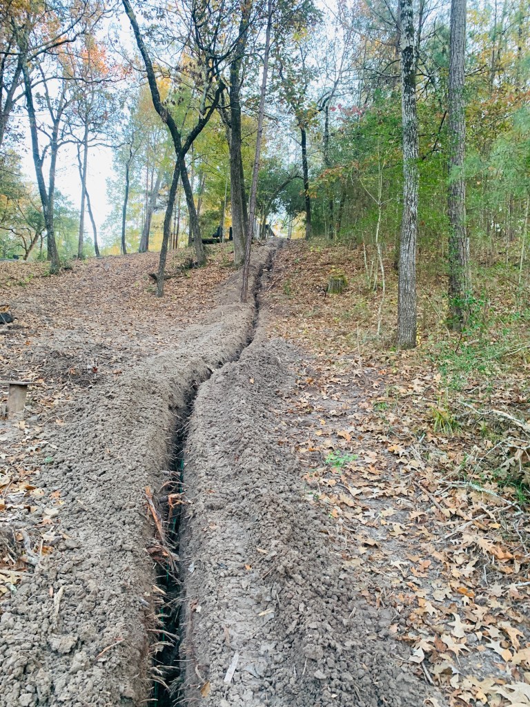 Armed with the piers being complete and the knowledge that there won’t be any inspectors throwing out any unknowns at me, I decided to do the power to the structure on my own. The main pole / meter / breaker panel was installed by the electric company. I was glad to pay them a little to do that. I added the RV outlets to that and am powering my temporary headquarters (an RV) from that directly. I decided to bury the power to the main house from the pole since it would look nicer. I tackled the trenching myself and this was all a first for me. The first attempt at trenching didn’t go so well, but that was mainly because I had the wrong equipment. The second attempt, on a following weekend, went well and I got 240′ of trench dug, wire laid, and panel connected over some sketchy terrain in one weekend. It works and would be completely up to international building code, if there ever was an inspection. (There apparently won’t be.) I was pretty proud of myself for that. It was a big project to be a first attempt, but it worked out. Like many things related to container construction, it tends to be overdone for the project.