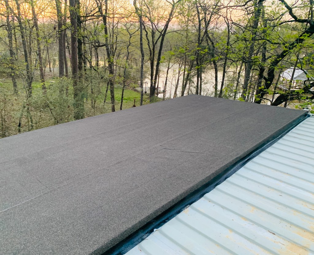 Once the roof and flashing were correct, I used a self adhering GAF roofing product. It is similar to standard roofing shingles except that it comes on rolls and has adhesive built in, instead of using nails. Boy, is it sticky. You have to get it just right because there is no room for error once it touches something. I learned that the hard way. I had it almost perfectly done until right towards the end. You can see a seam line and a wrinkle where I tried to correct it. But that is just cosmetic. I will be installing angled 2×4 today, so that the decking can sit on level supports and when that is installed, you won’t even see these minor imperfections. This effectively gives 3 roofs because I have the container roof (that although holds water, is still waterproof), the weather barrier system, then the roof material. With it flashed and sealed correctly, it should be effectively impossible for it to leak.