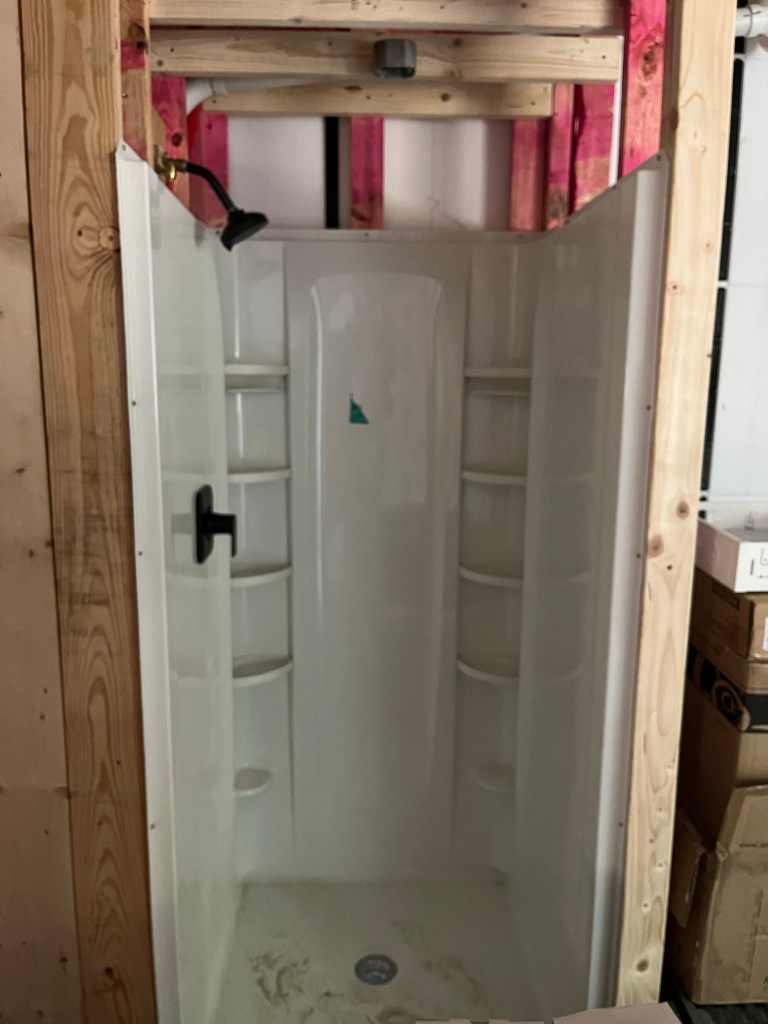 As I mentioned, the plumbing is finished inside. Both showers work and all of the plumbing checked out. Out of all of the connections, there was only one leak and it was a pretty simple fix to the output of the tankless hot water heater. I will still clean up the PEX, but everything holds. I have to give credit to Sharkbite products. I was not looking forward to making lots of connections and I am not very patient with things like that. So using PEX and Sharkbite connectors allowed me to DIY all of it, make good connections, feel confident about it all being correct. They are more expensive than the more tedious ways of making connections, but still less expensive than hiring a plumber and it does have professional results.