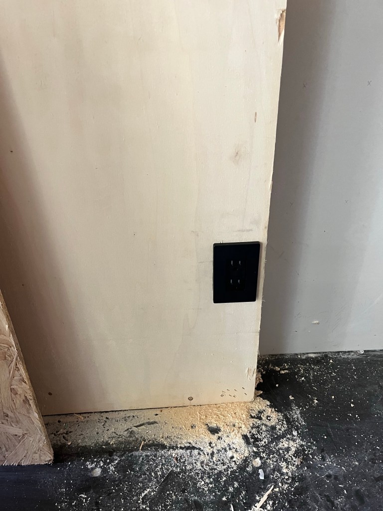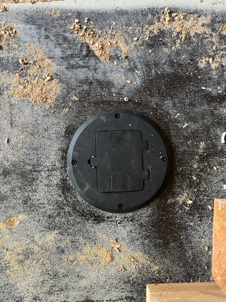 Since I designed and installed the electrical myself, there are a few well placed items for specific purposes. The floor outlet was relatively straightforward but was easier since there is access underneath the house. I am using Legrand adorne outlets throughout, but there is one behind a cabinet on the TV wall that didn’t need to be specialty since it won’t be visible.