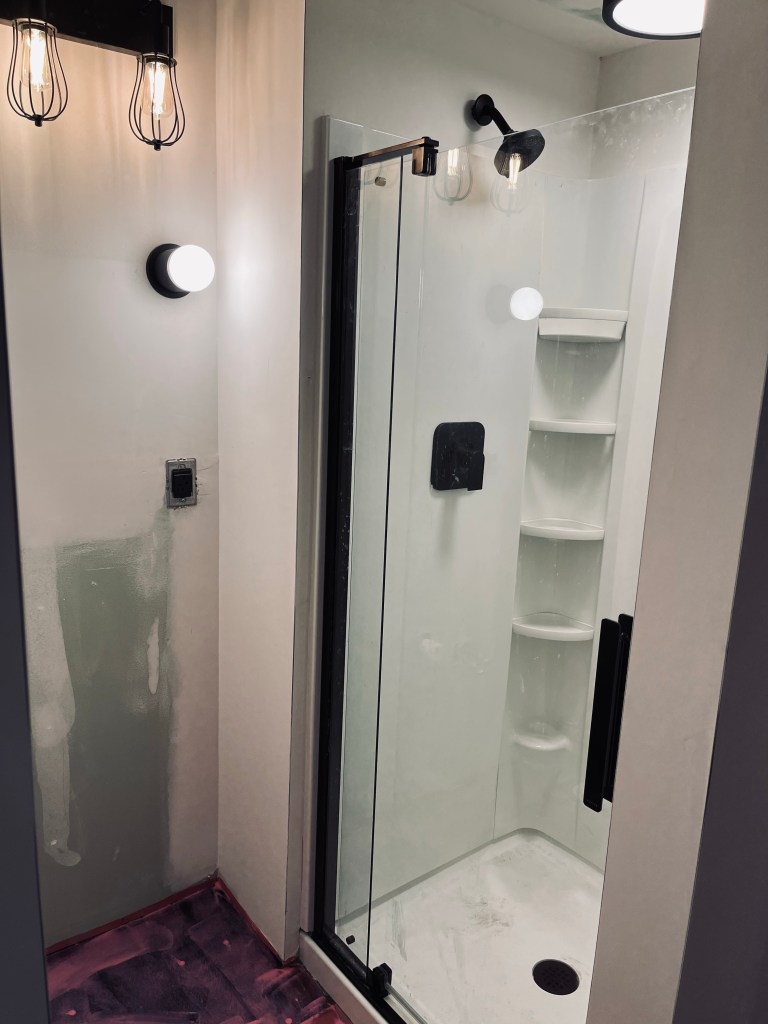 My intention was to start on tiling in the bathrooms. A misplaced trowel prevented that, but it is prepped and ready to go for this weekend. I did get the shower door installed in the first floor bath and got both vanity setups completed in the meantime. It isn’t much, but I was glad to be able to work in some small Buster + Punch details to the bathrooms. I used their bulbs over the kitchen island. I think some nice little details like that, plus some Moen and Kohler fixtures will elevate them just enough. Once I get tile in, it should be relatively painless to get the vanities set and connected. So this weekend will likely be tiling and plumbing focused.