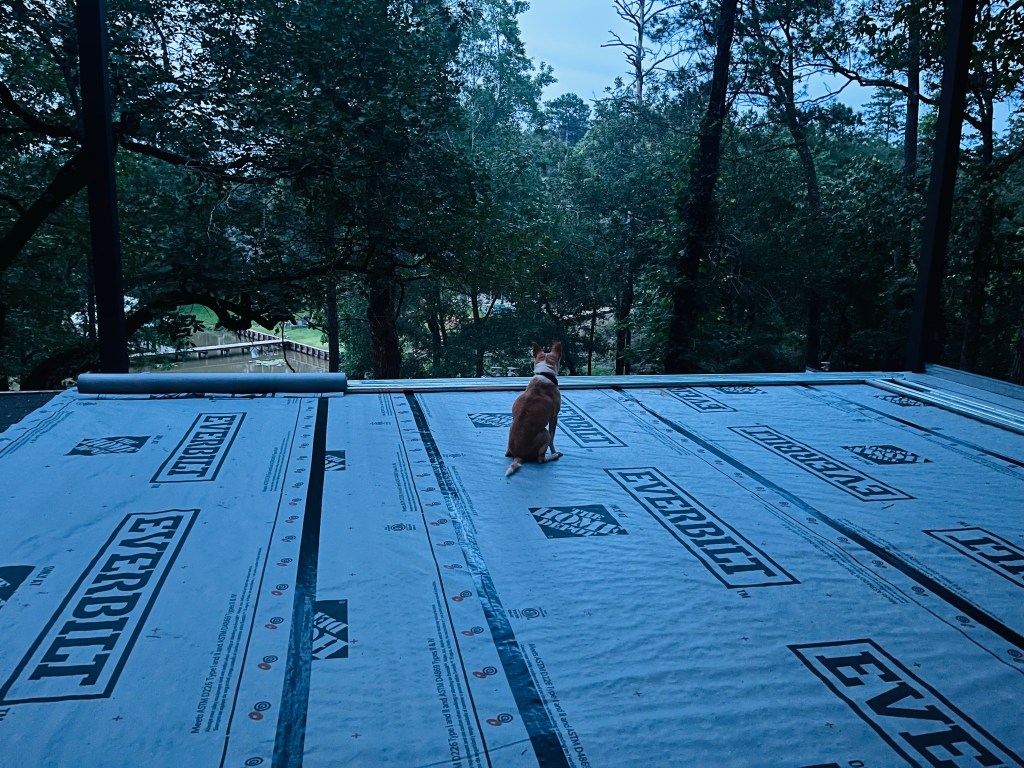I will finish the last pieces in the coming weekend or two. Another layer of roof underlayment will go over the wood decking to add waterproofing. Then deck boards go on top of that to finish it all.