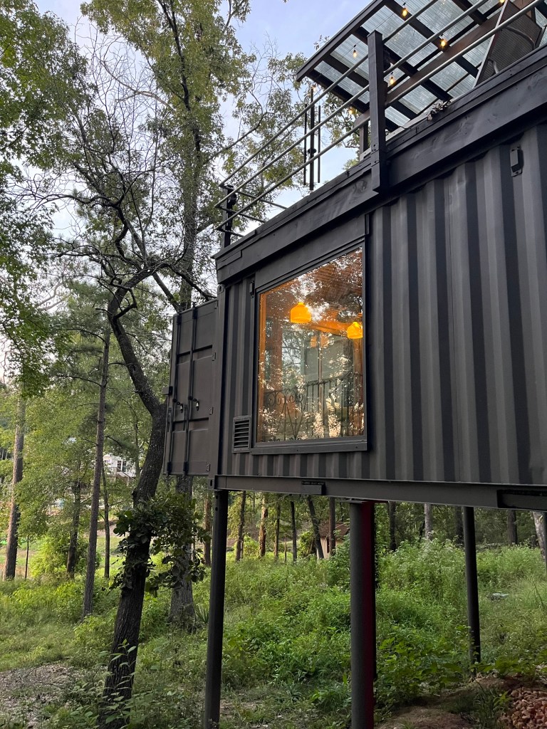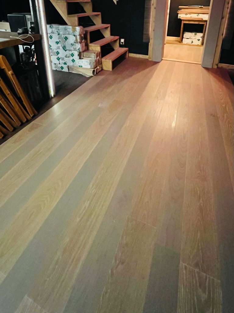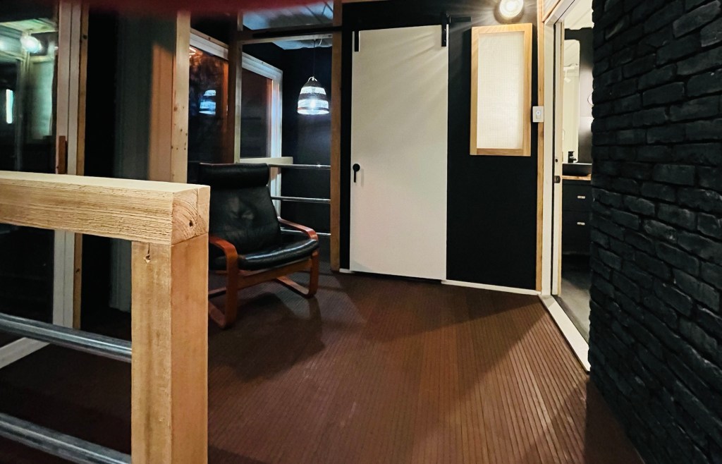 I finished all of the flooring throughout. While I never originally intended to put down wood flooring, I was able to use small quantities of leftovers from a company I worked with that couldn’t be resold. This prompted me to figure out how to make them work in the segments of space that I had. Plus with the container floor having overspray and drips from the paint mishap, it was either refinish that or put down new floor. I couldn’t pass up Italian made wood floor. Some of the floor was teak, which made a ton of sense to use in areas near exterior doors or in the kitchen. In other areas, I combined two types to make enough. So I made it work.