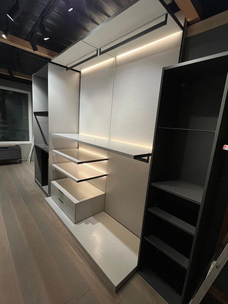 I always feel very fortunate that I was able to reuse products or use remnants from some very high end projects. My project isn’t that high end, but who would say no to a nearly perfect Italian closet system, even if they are slightly different styles. Same for the wood floors. Under 400 square feet is unusable for the projects I have worked on, but makes for the perfect amount for a single room. Like everything else on these projects in the last few years, it was all done by me, singlehandedly. There are obvious benefits and drawbacks to that. Jack of all trades, master of none. Regardless, I am happy with the outcome and even just this one area saves me from needing a storage unit.